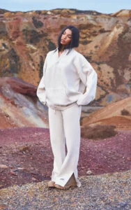 Aleena Beige Wide Leg Jersey Trousers