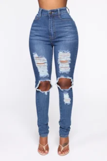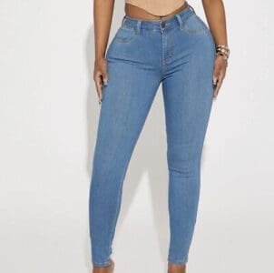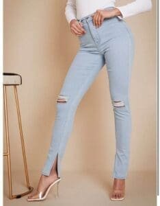 Isawitfirst high waisted disco skinny split hem light wash jeans