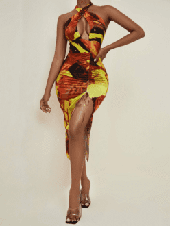 SHEIN SXY Graphic Print Cut Out Cami Bodycon Dress