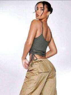 Shape Khaki Tie Dye Cotton High Neck Cut Out Top