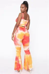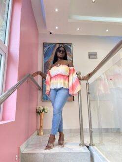 Lantern Sleeve Plunging Neck Tie Dye Top
