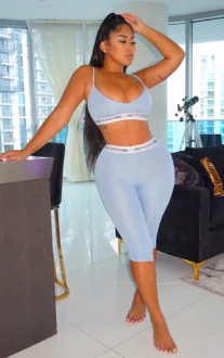 Pretty Little Thing Pale Blue Bralet and Crop Legging Set
