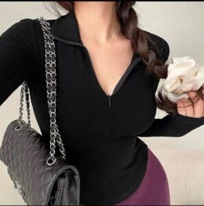 SHEIN V-Neck Rib-knit Top
