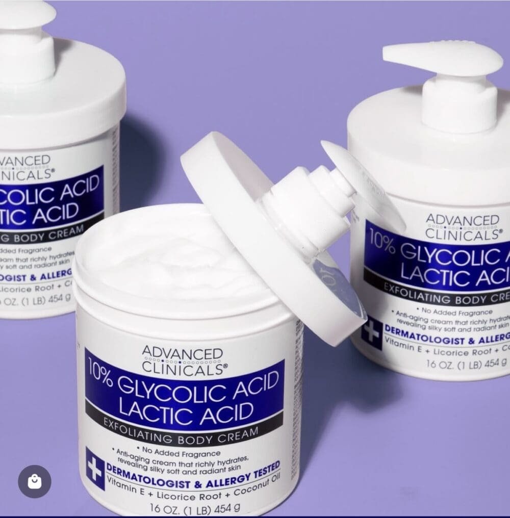 This exfoliating body cream is formulated with 10 percent Glycolic Acid and Lactic Acid to gently remove dead skin cells and improve skin texture. It helps smooth rough areas and enhance skin clarity over time.