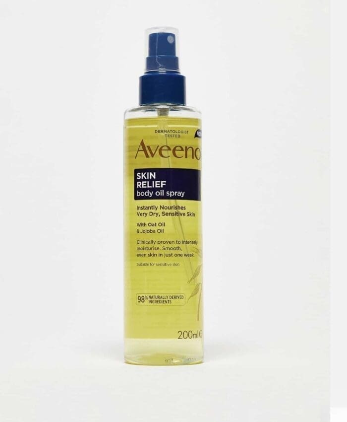 Aveeno Skin Relief Body Oil Spray helps relieve and repair very dry skin from the first application by providing a long-lasting moisturisation . Its unique formula contains oat oil and jojoba oil, which are ingredients rich in lipids and fatty acids that help restore the skin barrier .