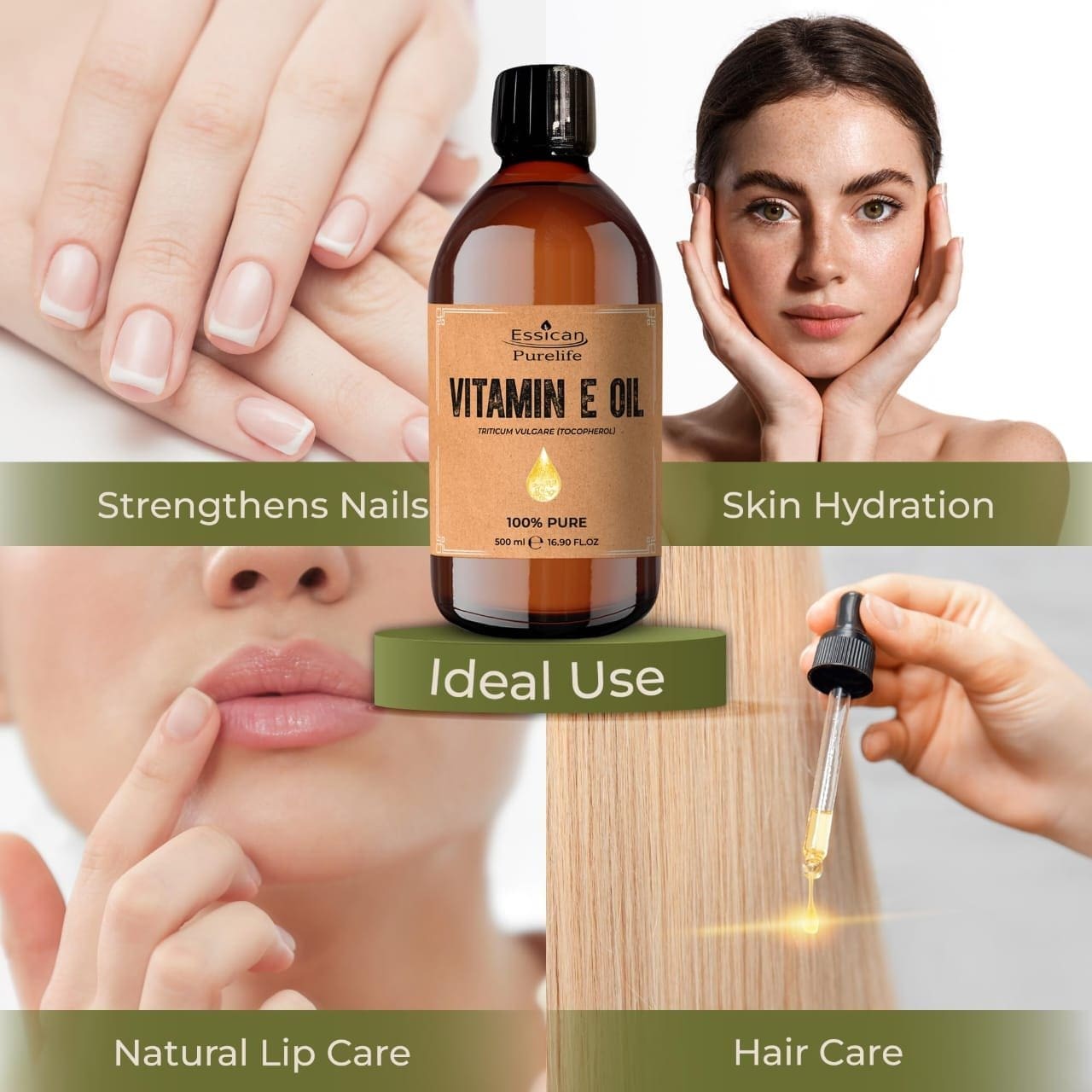 Pure Vitamin E oil to deeply nourish, repair, and protect your skin from dryness and damage.