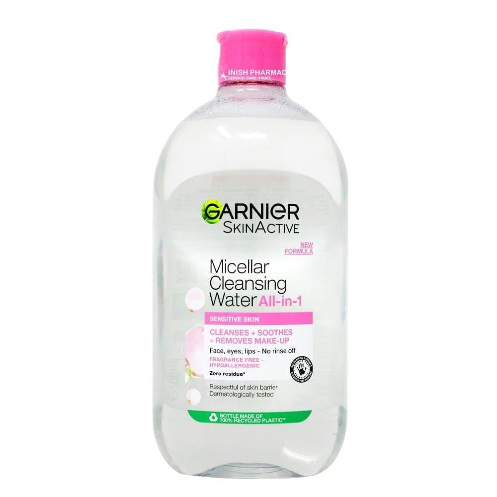 Garnier Micellar Water for Sensitive Skin is a dermatologically tested formula designed to cleanse, remove makeup, and refresh skin without harsh rubbing.