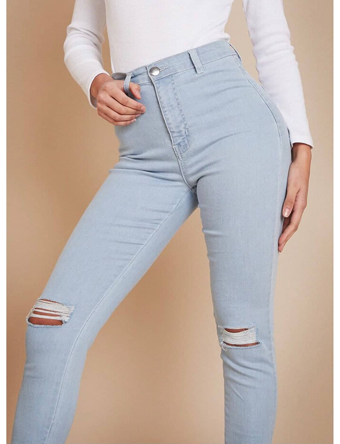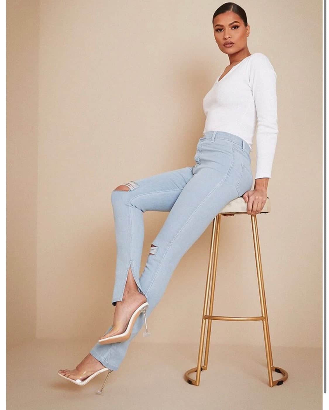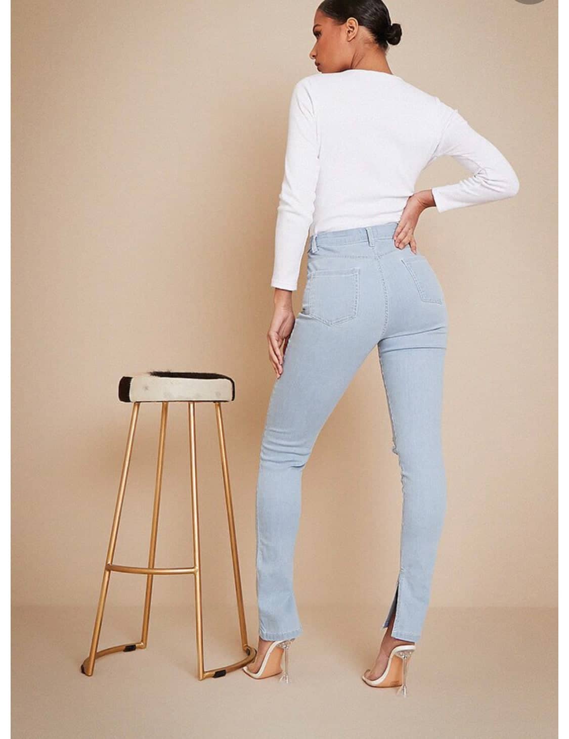 Isawitfirst high waisted disco skinny split hem light wash jeans