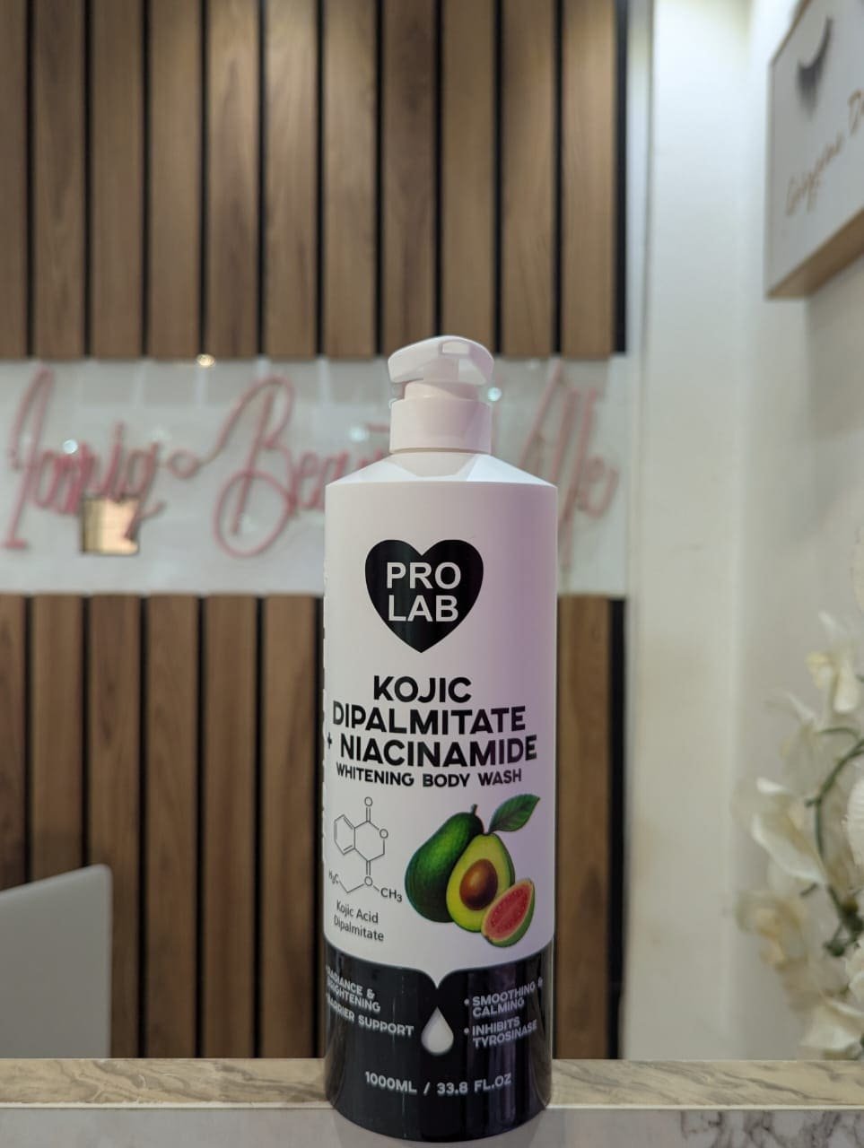 This whitening body wash is designed to cleanse the skin while supporting a brighter and more even looking body tone. Kojic Dipalmitate and Niacinamide work together to improve skin clarity and reduce dullness over time.