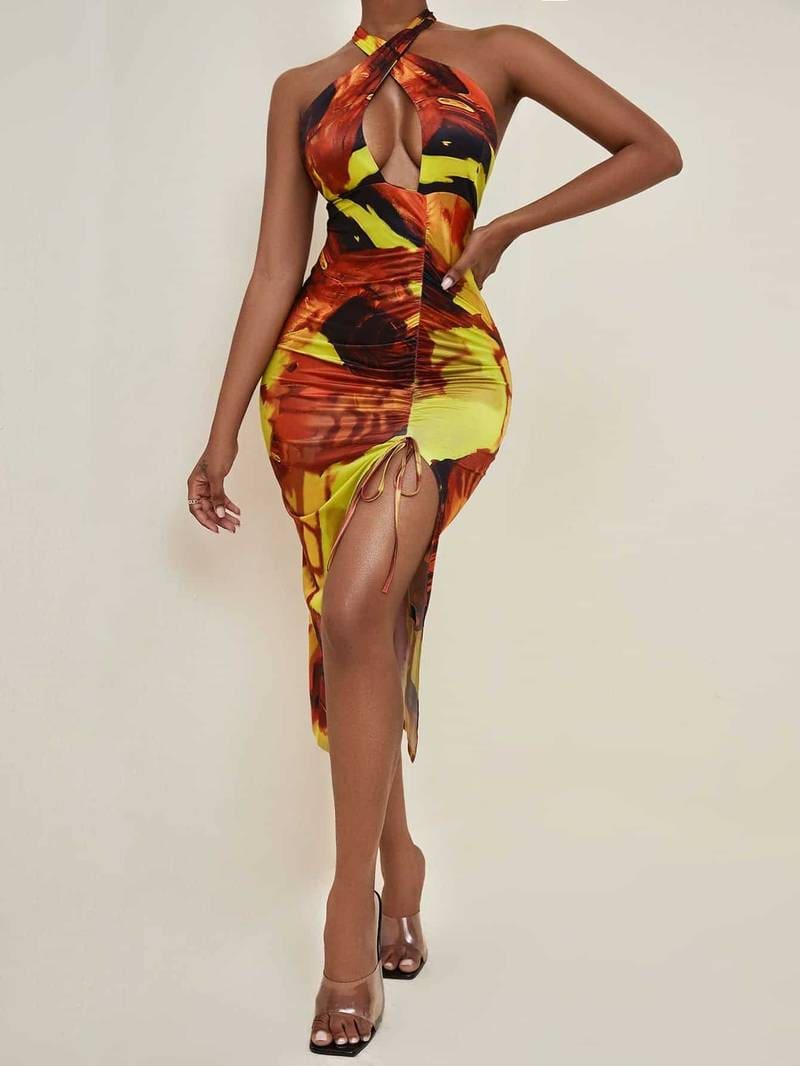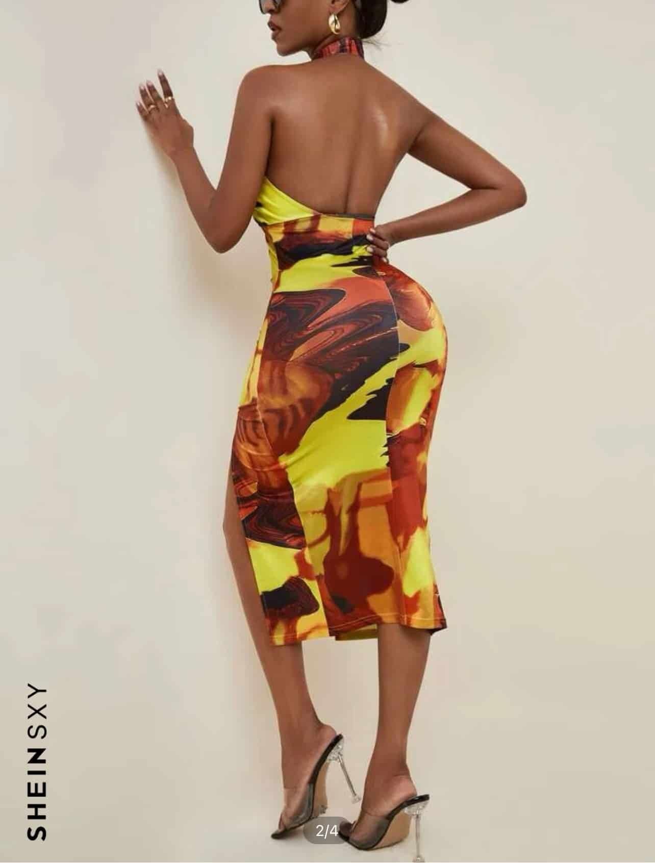 SHEIN SXY Tie Dye Backless Knot Hem Halter Bodycon Dress at SHEIN, part of our latestWomen Dresses