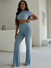 Tie Waist Crop Top And Wide Leg Trouser