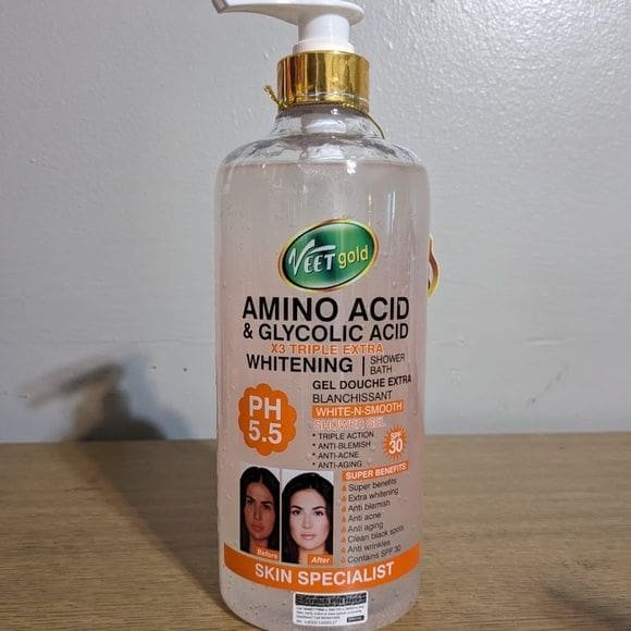 Say goodbye to dull, rough skin with the Veet Gold X3 Triple Extra Shower Bath, enriched with amino acids and glycolic acid to gently exfoliate, deeply cleanse, and boost skin radiance.