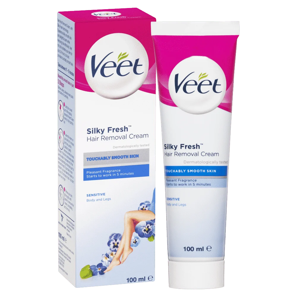 Buy Veet Silky Fresh Hair Removal Cream for Sensitive Skin 100 ml from IconiqBeautiville Ghana for quick, gentle, and silky-smooth results.