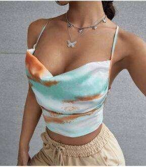 SHEIN EZwear V-Neck Rib-knit Crop Top