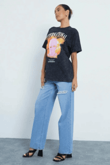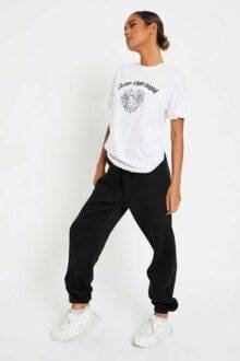 SHEIN EZwear Letter & Floral Print Drop Shoulder Tee