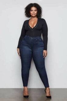 Plt plus mid blue wash split hem mom jeans