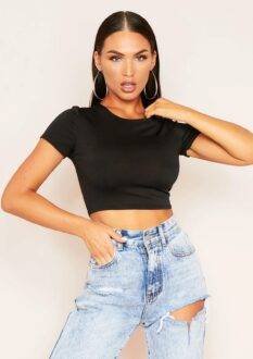 Areeta Black Cap Sleeve Smooth Cropped T-Shirt